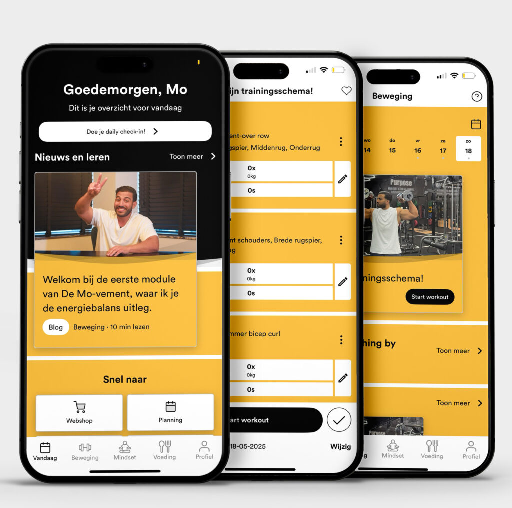 In de app vind je exclusieve communitykanalen waar je extra inspiratie en motivatie opdoet, van Mo, onze coaches én van andere leden die hetzelfde pad bewandelen. Zo sta je er nooit alleen voor, maar zijn we elke stap van de weg bij jou!